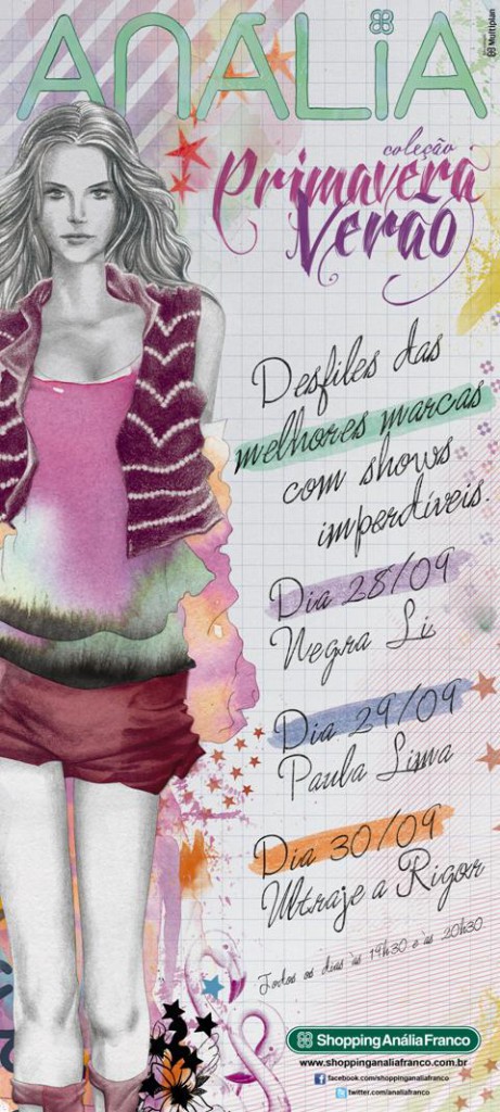 Na semana passada aconteceu o desfile da coleção Primavera/Verão de lojas do Shopping Anália Franco. Foram 3 dias de desfiles de moda feminina, masculina, infantil, lingerie, calçados e acessórios, com direito a shows de Paula Lima, Negra Li e Ultraje a Rigor.