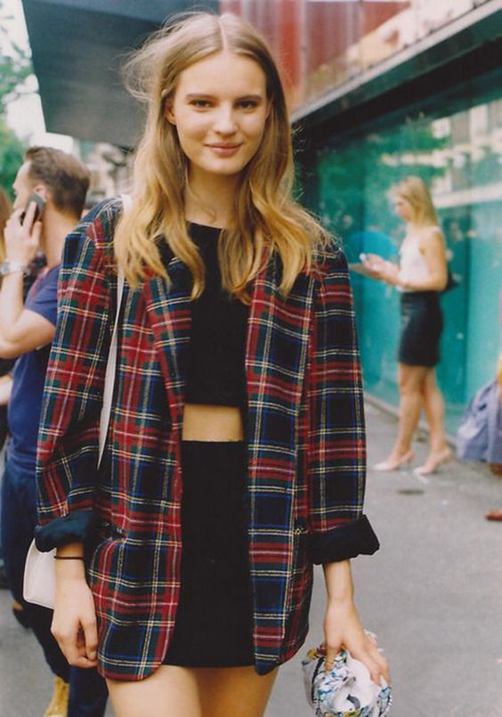 A estampa xadrez tradicional já traz para qualquer look uma vibe grunge, descontraída e confortável. Uma maneira de reinventar a camisa xadrez de flanela clássica é usar um modelo oversized sobreposto com um vestido mais justinho ou até mesmo um conjunto de cropped + saia. O importante é que a camisa tenha destaque! Se quiser parecer ainda mais fashionista, opte pelo blazer xadrez largo, queridinho dos anos 90 que voltou com tudo para o street style.