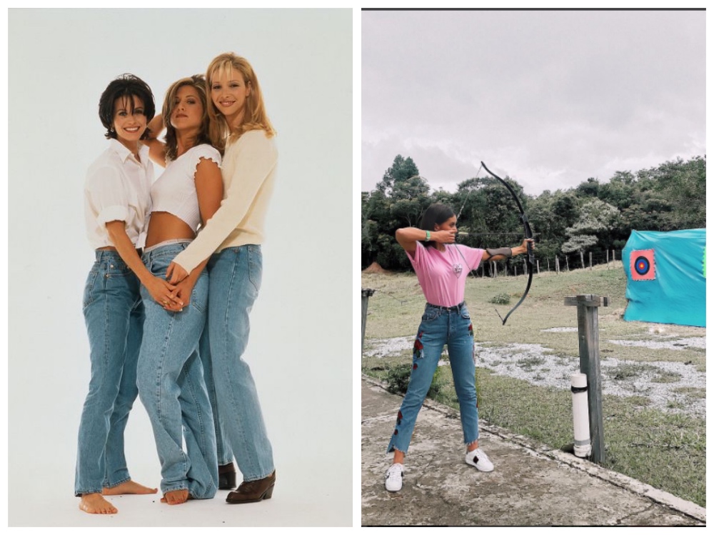 Os chamados jeans da mamãe ganharam esse nome justamente por terem sido muito usados pelas jovens dos anos 90 que hoje são mães. Esse modelo de jeans era normalmente de lavagem azul simples, com cintura alta e corte bem reto. Os anos passaram e o modelo voltou com tudo por ser extremamente versátil e manter o charme vintage. Blogueiras como a Camila Coelho tem apostado em mom jeans com detalhes como os patches e a barra assimétrica que dão um ar cool ao look.