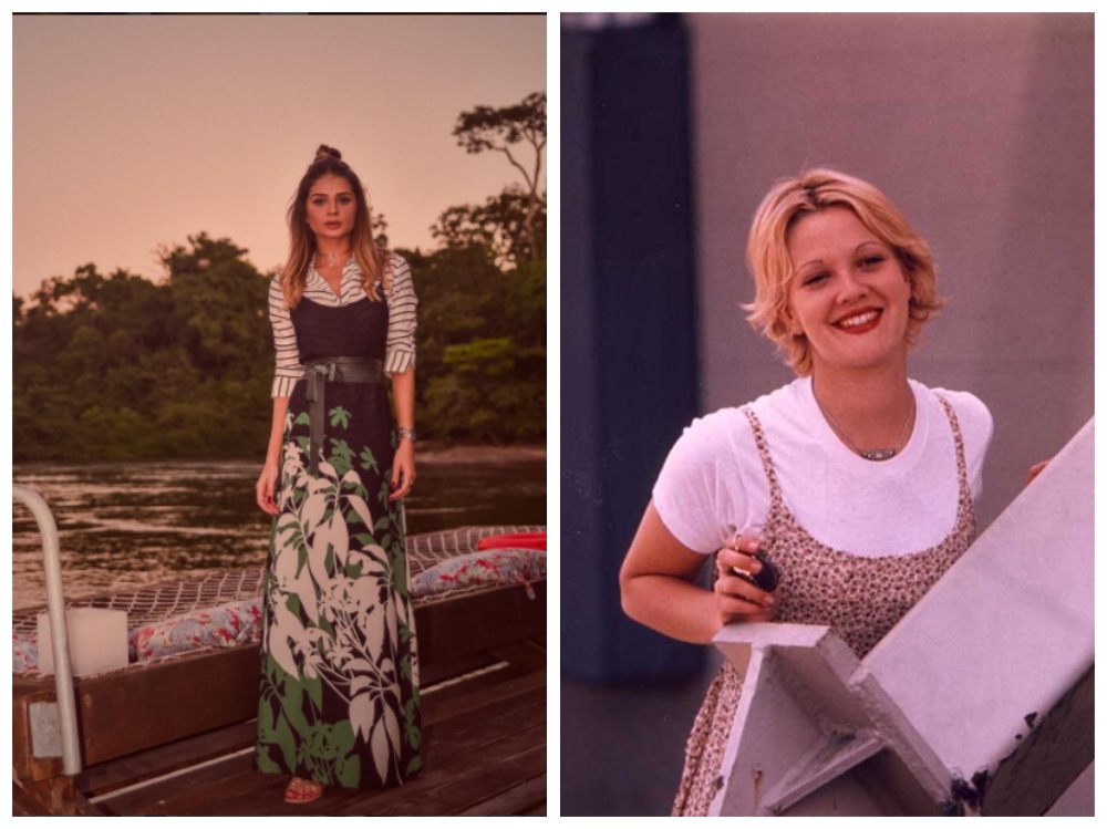 Foi nos anos 90 que as sobreposições de vestido slip dress com camisetinha básica começaram a aparecer. Divas da época como Jennifer Aniston e Drew Barrymore mantinham o estilo desleixado de propósito combinando a sobreposição com tênis casuais como All Star. A tendência voltou com tudo, mas com uma mudança: dose extra de ousadia (adoro!). Blogueiras como Thassia Naves passaram a sobrepor vestidos longos mais estruturados com camisas sociais lisas e estampadas, criando um look elegante e cheio de estilo.